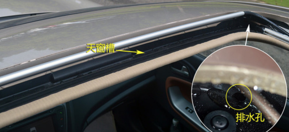 雨水会让很多污物积聚在天窗,例如:灰尘、树叶等。如果排水槽堵塞的话,积水就会进入车辆的内部,使车辆电路等受到损坏,影响驾驶人驾车,应及时清理。
