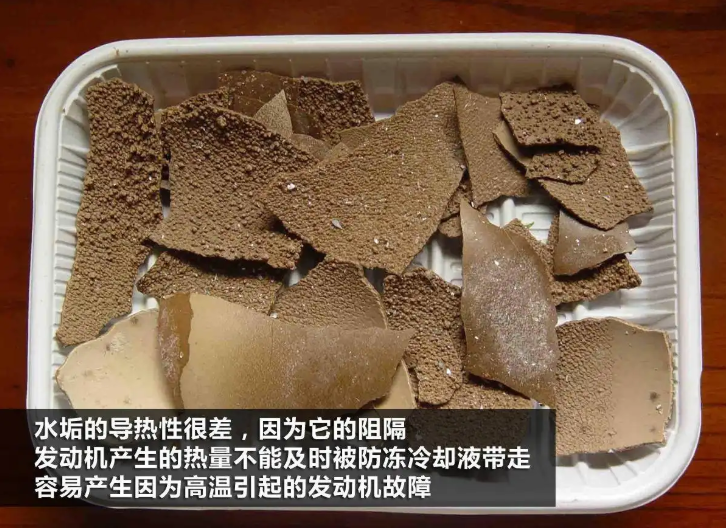 3.防垢效果。冷却系统中的水垢来自阳离子,如水中的钙和镁。这些碱土金属阳离子在热负荷下容易与水中的诱导离子反应生成水垢。水垢会磨损水泵的密封件,覆盖气缸的水套外壁,使其导热性降低,气缸盖高温区温度急剧上升,导致气缸开裂。因此,为了减少水垢的形成,在冷却液的生产和灌装中需要软化的去离子水。