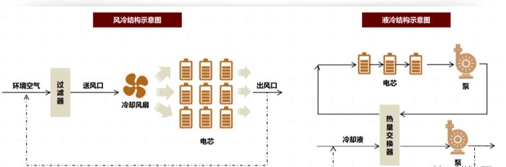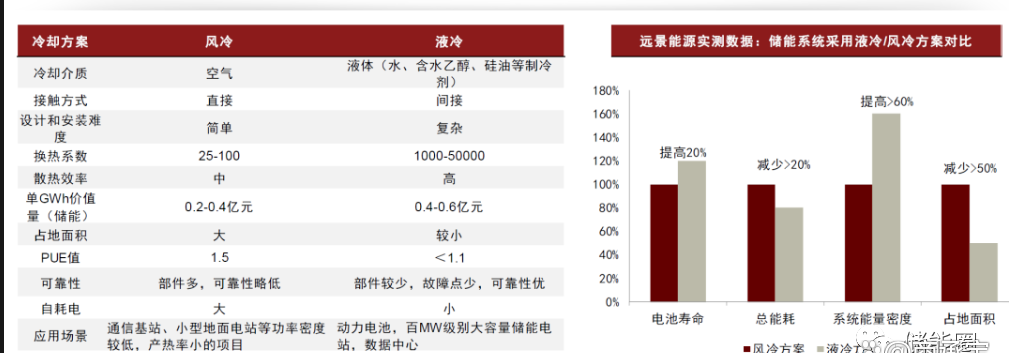 ► 换热系数/效率高:液冷的换热系数大概在1000~50000之间,风冷的换热系数只有 25~100之间,液冷系统更适用于储能的2C3C快充应用。